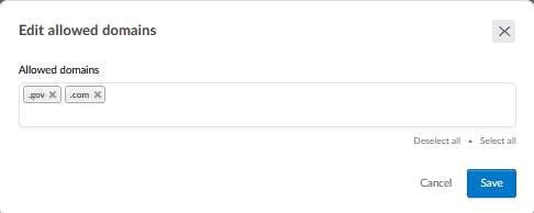 The blue button next to the Visible to everyone checkbox allows you to define which domains the field is visible to. By default, it is visible to everyone, but you can click on the button to bring up a prompt that allows you to add domains it will be visible to (.gov, .com, .jp, etc)