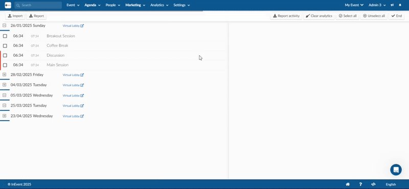 - Go to Agenda > Activities